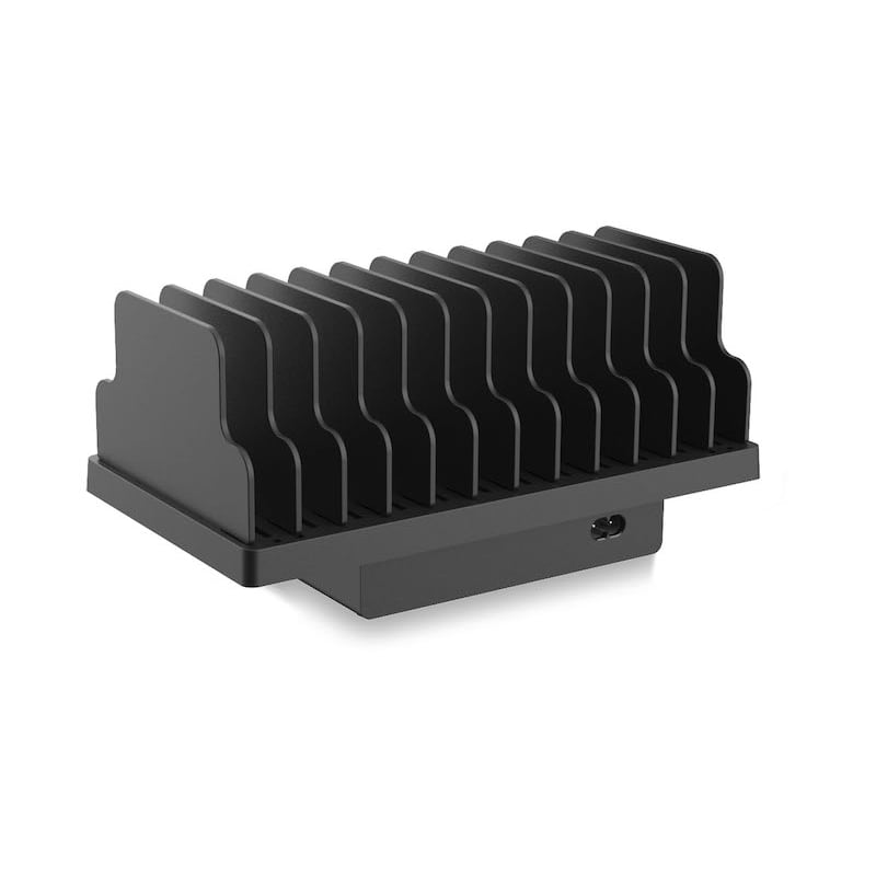 Levereras med hållare för 12 enheter – oavsett om det är surfplattor eller smartphones – med individuellt justerbara avdelare.