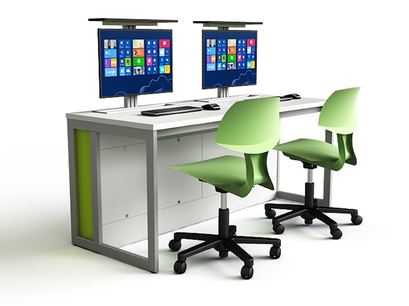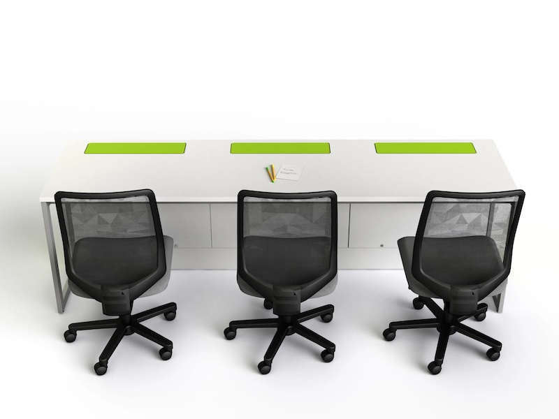 • Ett mycket brett utbud av standardformer och storlekar: singel, dubbel, trippel, bänkbord med upp till 6 datorplatser, cirkulära IT-bord, samarbetsbord med delade skärmar och till och med bord formade som klubbor